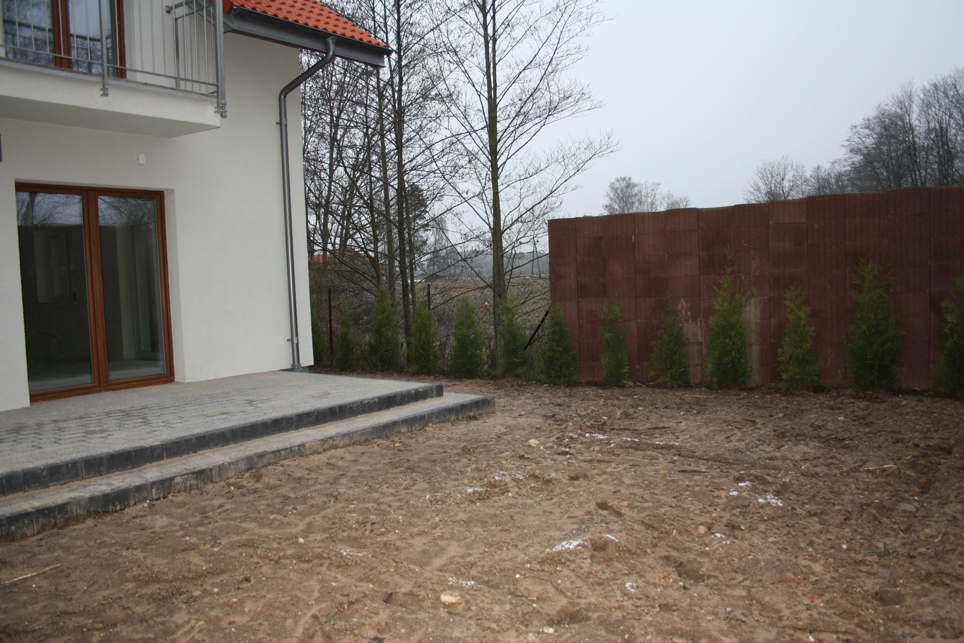 Budowa budynku nr 4 właśnie została zakończona. Teren wokół budynku został wyrównany, uporządkowany, przed budynkiem utwardzono specjalnym kruszywem drogę dojazdową, wzdłuż ogrodzenia posadzono iglaste krzewy.